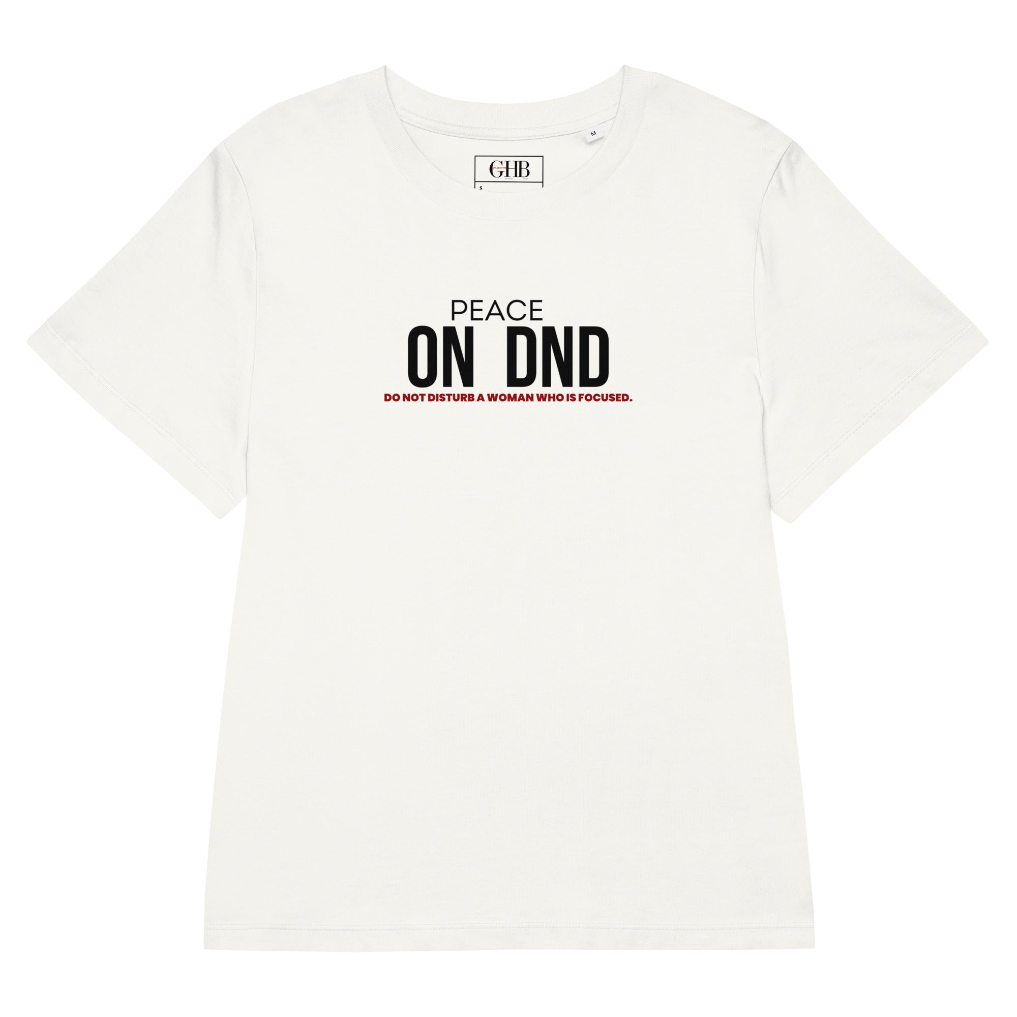 The Peace on DND tee was designed for women who protect their peace like purpose. This is not isolation, it’s about alignment. The phrase says what your spirit already knows: every time you choose stillness, you choose strength.